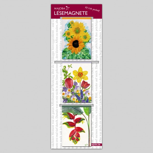Set of 3 MAJOBA Magnetic Bookmarks Maxi – for anyone who loves colors and flowers