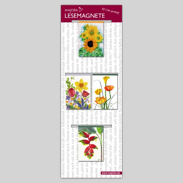 Set of 4 MAJOBA Magnetic Bookmarks Classic – for anyone who loves colors and flowers