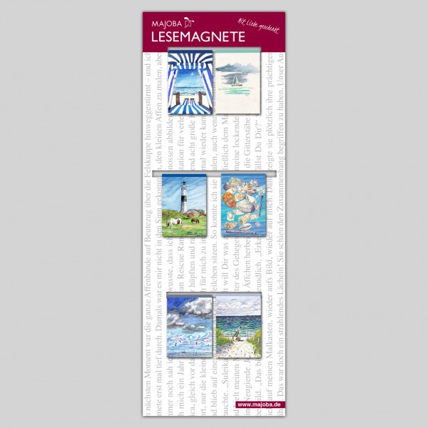 Set of 6 MAJOBA Magnetic Bookmarks Mini – for costal lovers and anyone longing for the sea