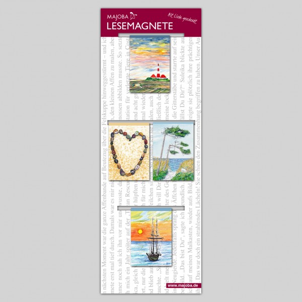 Set of 4 MAJOBA Magnetic Bookmarks Classic – for coastal lovers and anyone longing for the sea