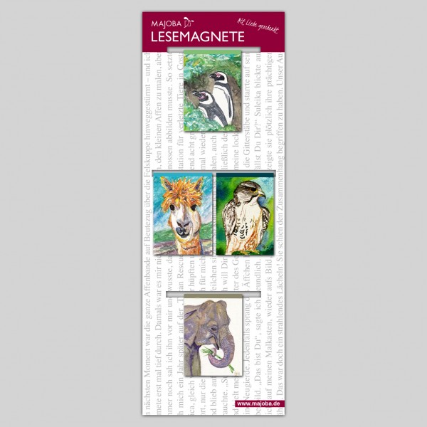 Set of 4 MAJOBA Magnetic Bookmarks Classic – for nature enthusiasts and animal lovers