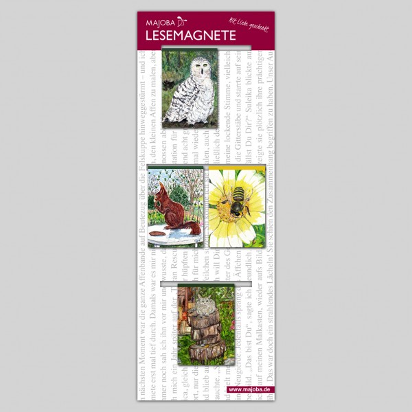 Set of 4 MAJOBA Magnetic Bookmarks Classic – for nature enthusiasts and animal lovers