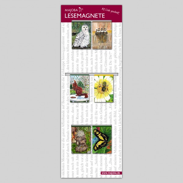 Set of 6 MAJOBA Magnetic Bookmarks Mini – for nature enthusiasts and animal lovers